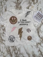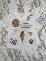 White short sleeve T-shirt. Complete with Professionally heat applied design.
