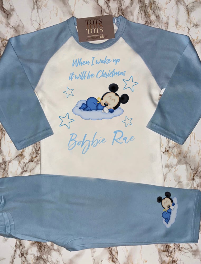 Blue/White two piece pyjamas set complete with Professionally heat applied design.PERSONALISATION DETAILS)_MUST BE LEFT IN CUSTOMER NOTES BEFORE CHECKING OUT.12 LETTER MAXIMUM COUNT.Eg. Jessica