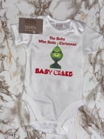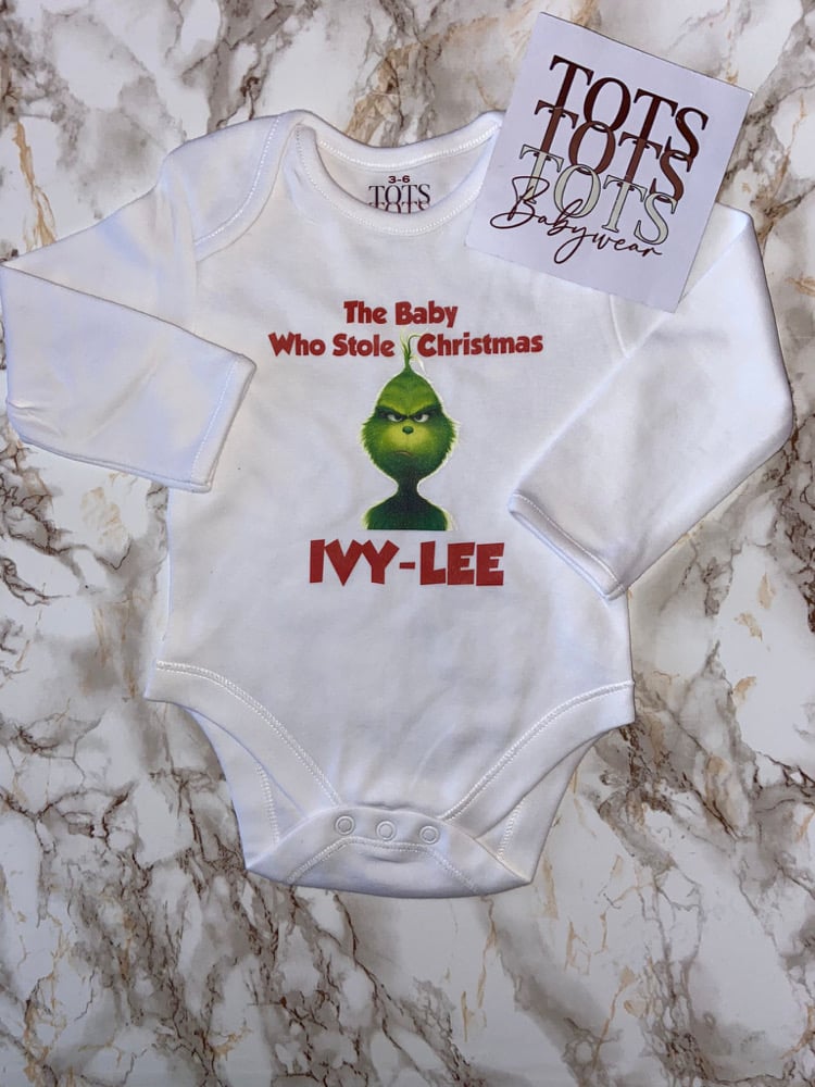 White short or Long-sleeve baby Bodysuit. Including Professionally heat applied design.