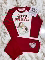 Red/White two piece pyjamas set complete with Professionally heat applied design.PERSONALISATION DETAILS)_MUST BE LEFT IN CUSTOMER NOTES BEFORE CHECKING OUT.12 LETTER MAXIMUM COUNT.Eg. Jessica