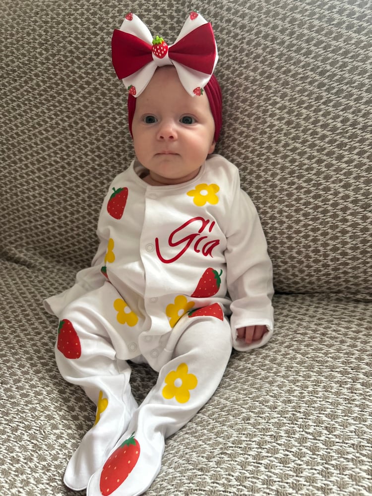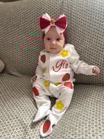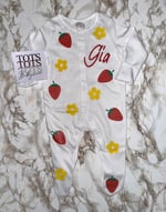 Sleepsuit includes images on two front sides of sleepsuit only. Name on small chest as shown.