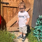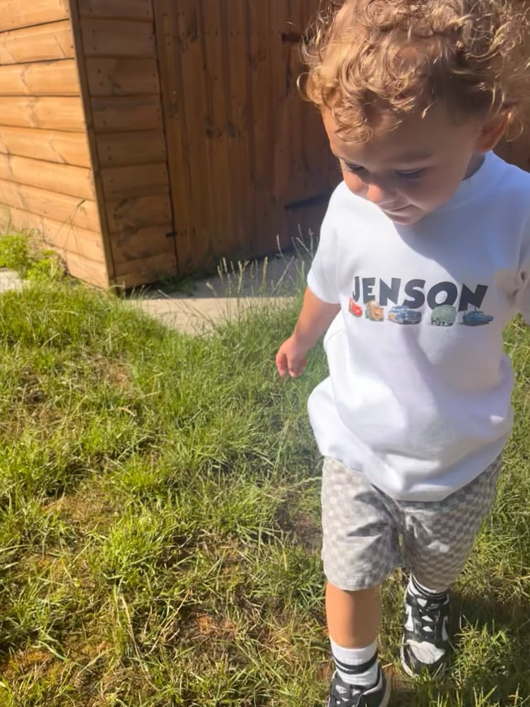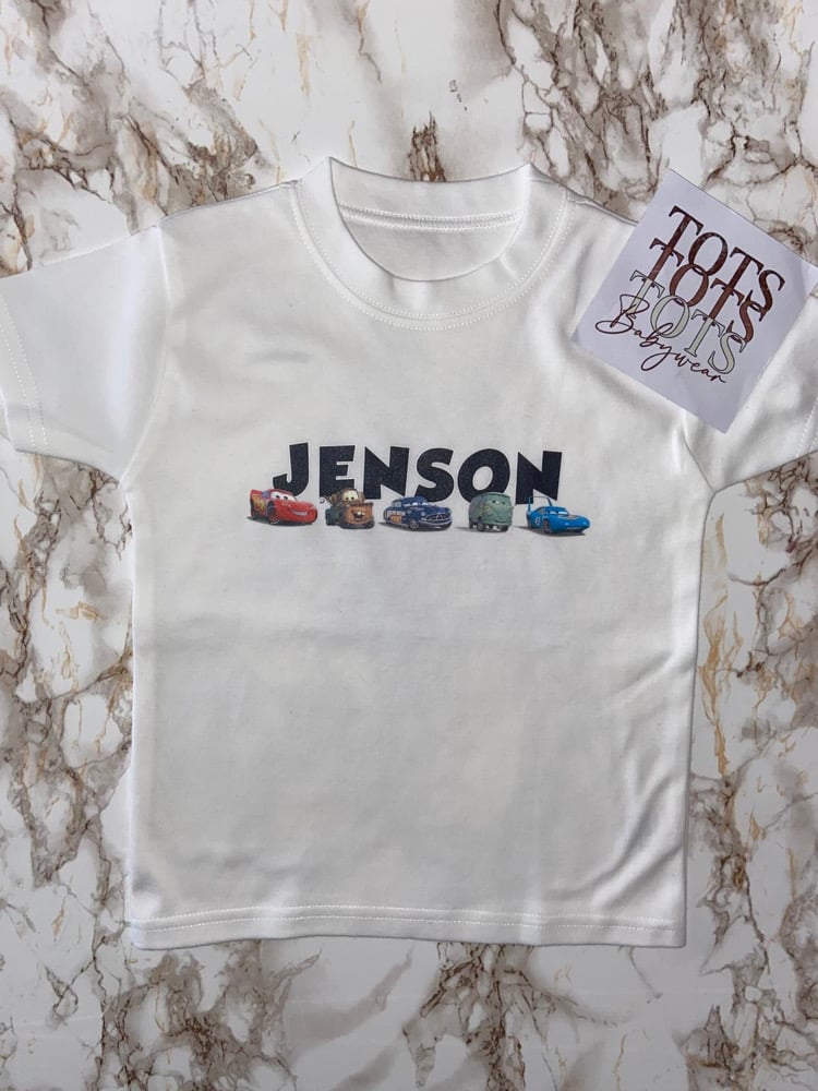 White short sleeve T-shirt. Complete with Professionally heat applied design.