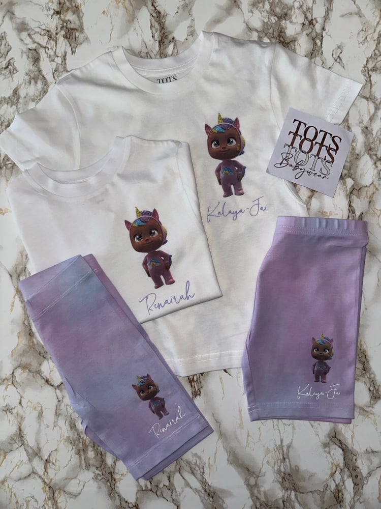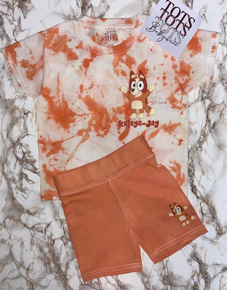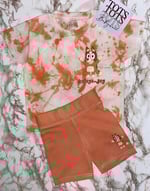 White childrens tshirt and cycle set. Hand dyed short or tie dyed. Tie dyed T-shirts for some designs also. See examples. Each will vary as each are unique and made to order.