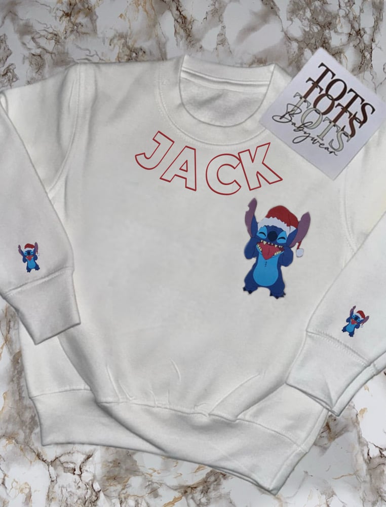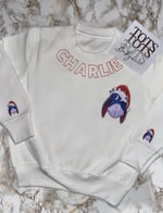 White Sweatshirt. Including Professionally heat applied design..choice of different characters.