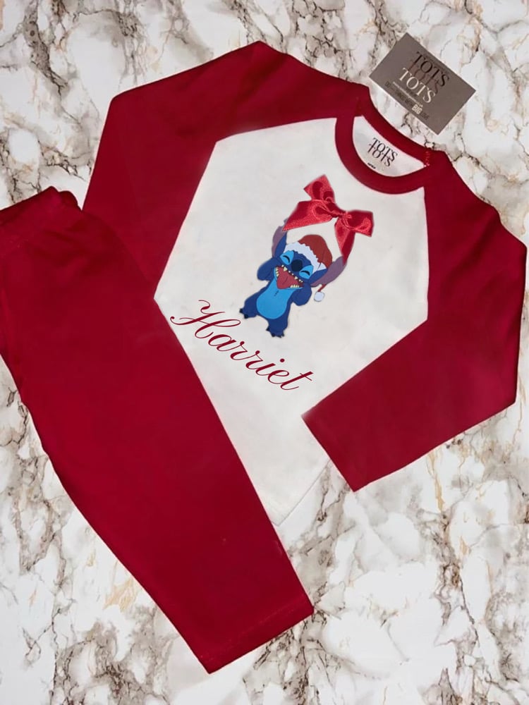 Red/White two piece pyjamas set complete with Professionally heat applied design.