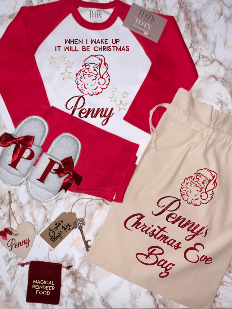 ~Red/White two piece pyjamas set complete with Professionally heat applied design.