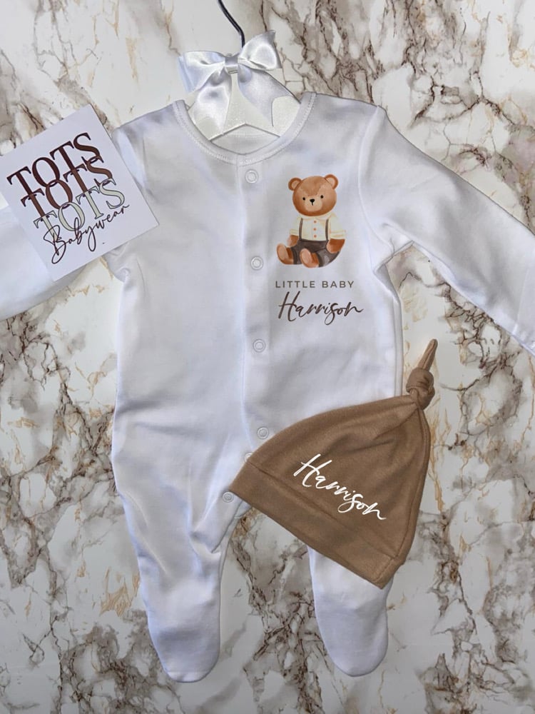 Sleepsuit includes the words “Little baby”