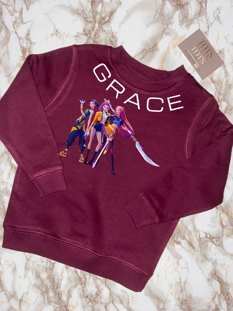 Burgundy Sweatshirt. Including Professionally heat applied design. Slimmer style fit sweatshirt- if preferred size up.