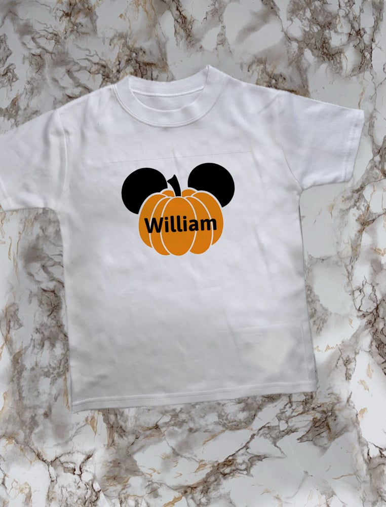 One white short sleeve T-shirt. Complete with Professionally heat applied design.