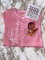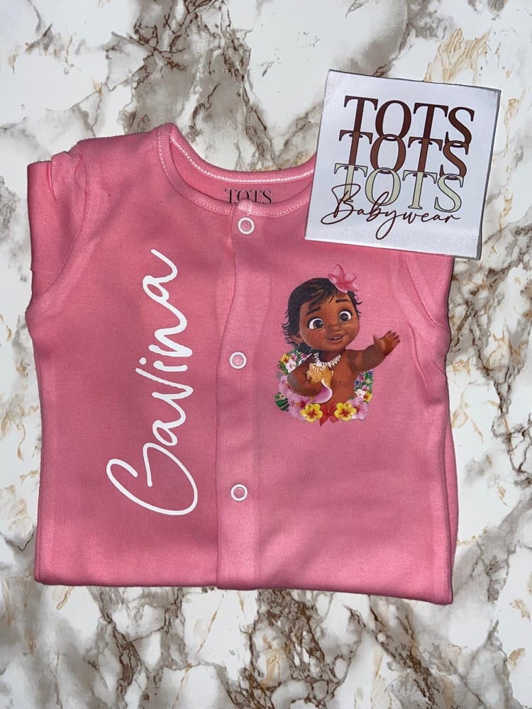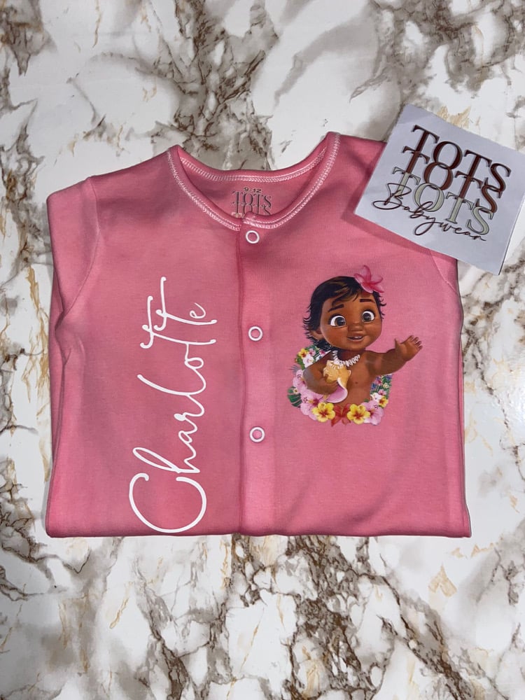 Hand dyed baby sleepsuit. Including Professionally heat applied design. Shades may vary as each made to order.