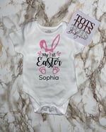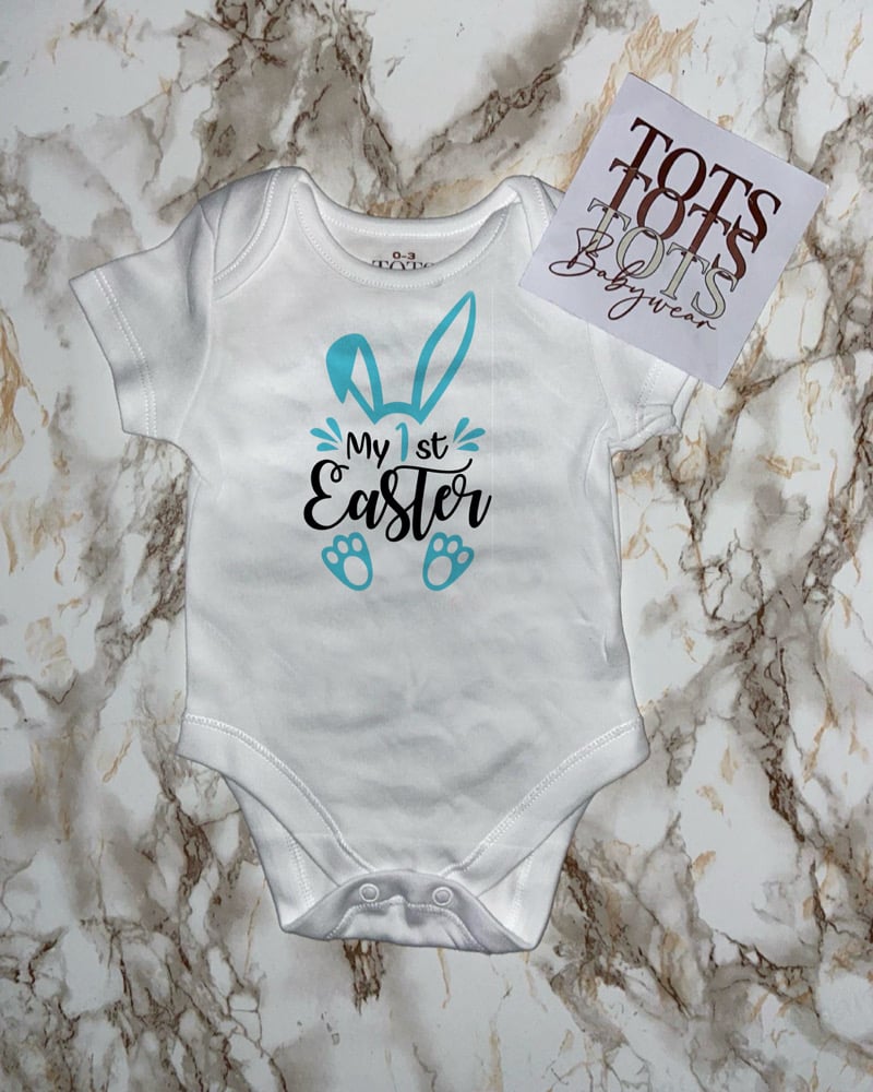 White short-sleeve baby Bodysuit. Including Professionally heat applied design.