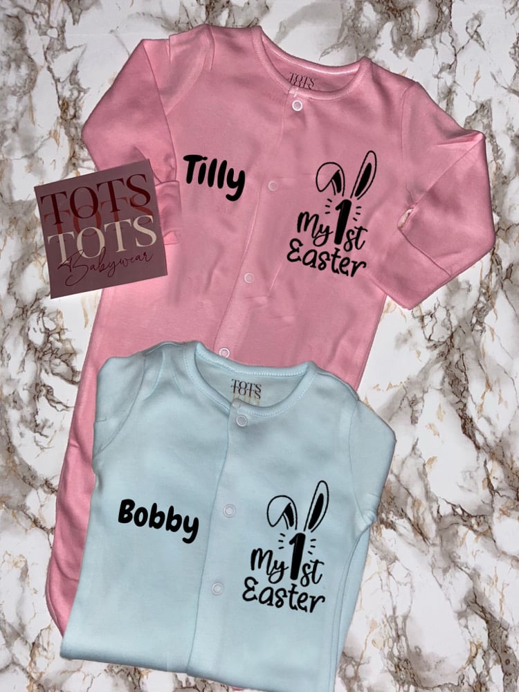 Hand dyed baby sleepsuit. Including Professionally heat applied design. Shades may vary as each made to order.