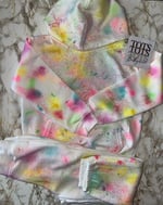 White children's hoodie and joggers set. Hand dyed. Designs will vary as each are unique and made to order. Socks not included.