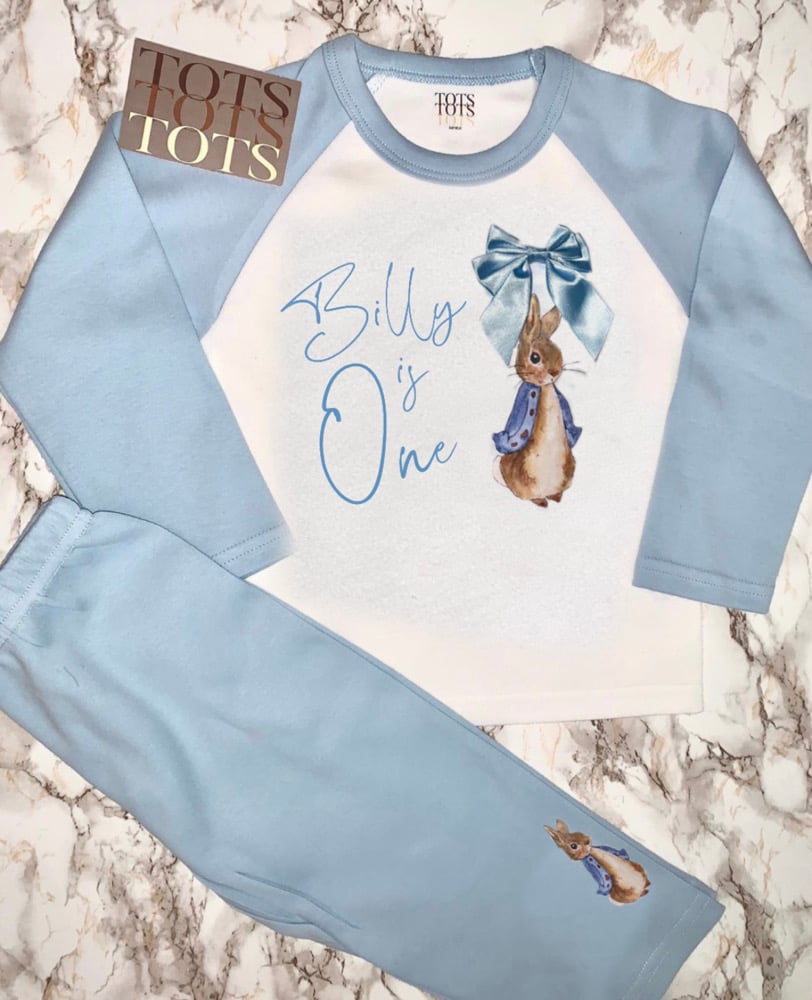 Pink/White two piece pyjamas set complete with Professionally heat applied design.