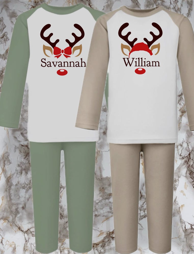 Sage/White or Mink/white two piece pyjamas set complete with Professionally heat applied design.PERSONALISATION DETAILS)_MUST BE LEFT IN CUSTOMER NOTES BEFORE CHECKING OUT.12 LETTER MAXIMUM COUNT.Eg. Jessica