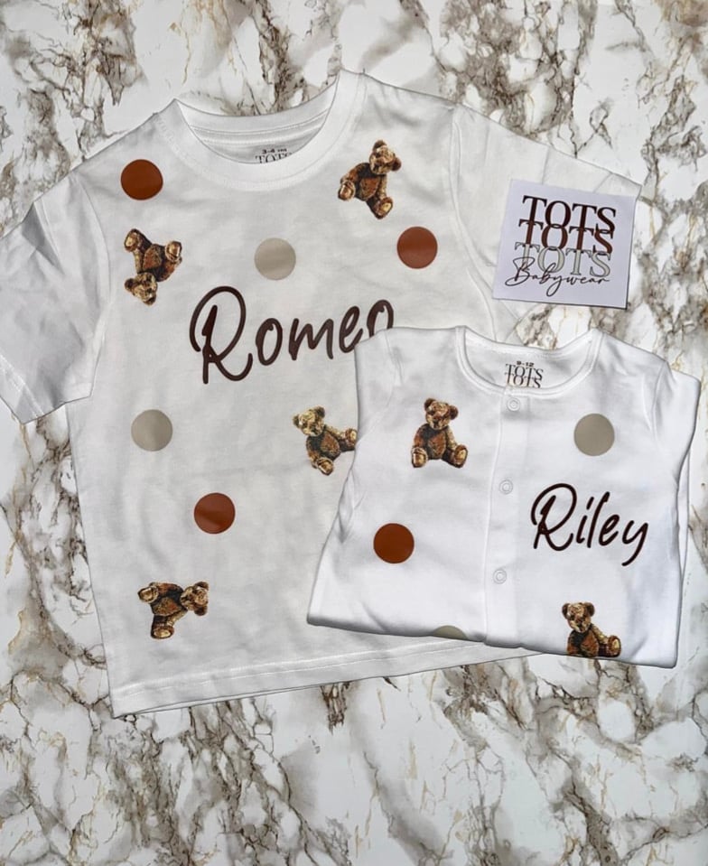 New designs! Available in a tshirt or baby sleepsuit. Including Professionally heat applied design.