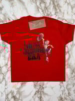 RED short sleeve T-shirt. Complete with Professionally heat applied design.