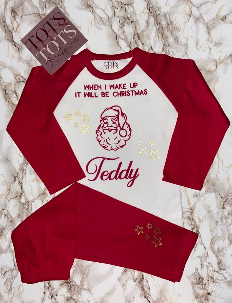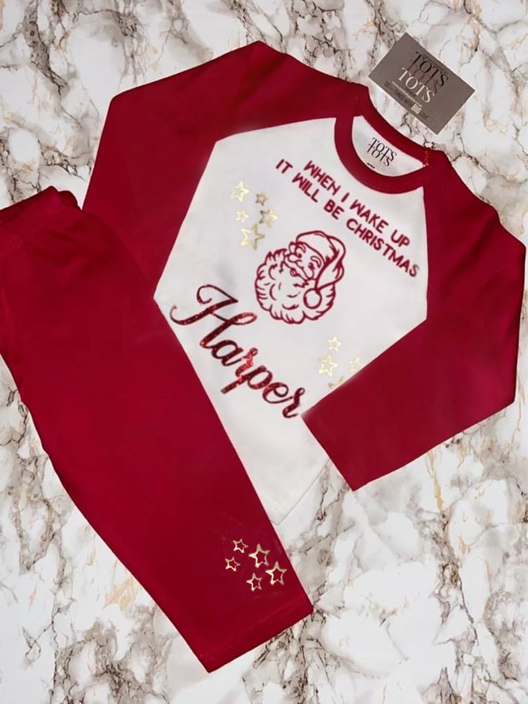 Red/White two piece pyjamas set complete with Professionally heat applied design.PERSONALISATION DETAILS)_MUST BE LEFT IN CUSTOMER NOTES BEFORE CHECKING OUT.12 LETTER MAXIMUM COUNT.Eg. Jessica